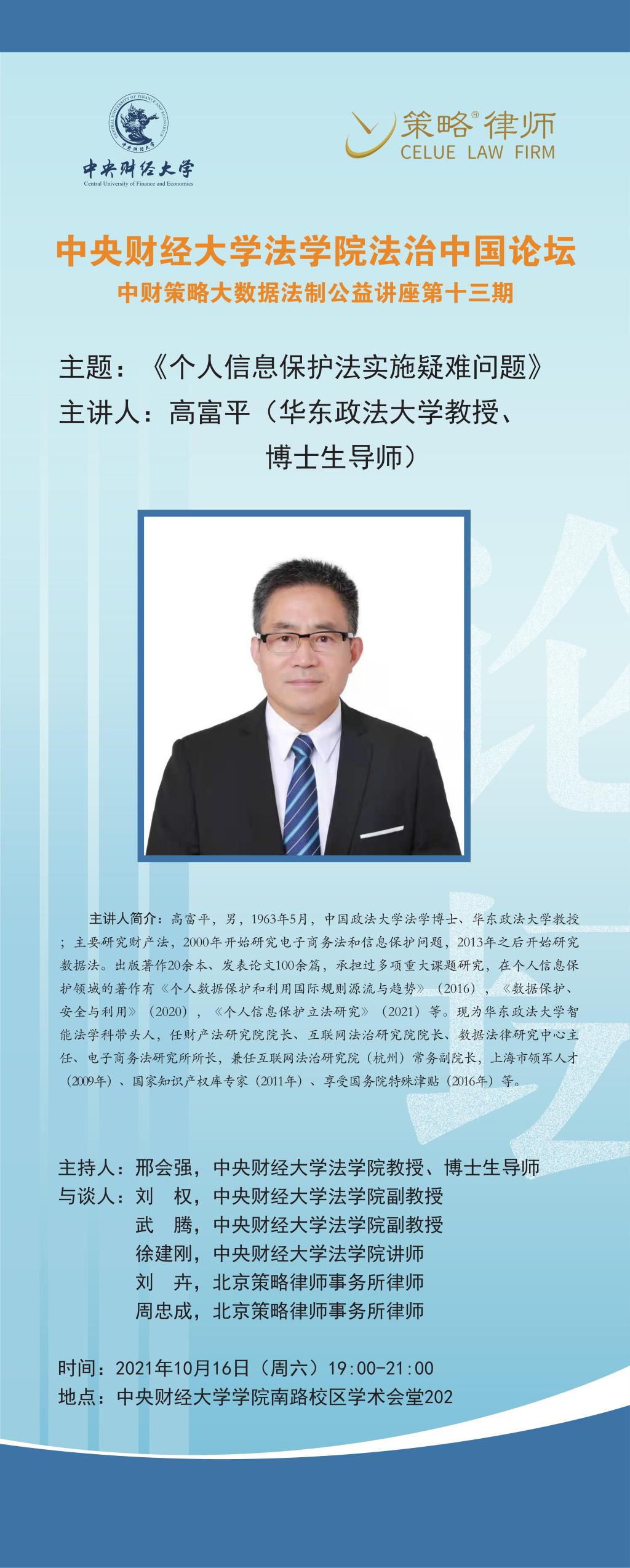 • 讲座|10.16|个人信息保护法实施疑难问题