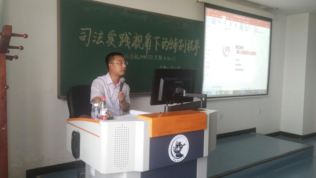 本次讲座以“司法实践视角下的特别程序——以马航MH370失联为切入点”为主题。孙之智法官将讲座共分为七大部分,并向同学们详细介绍了在司法实践的视角下,如何审理需要使用特别程序的案件。孙之智法官首先和大家一起回顾了民事诉讼特别程序的基本概念。之所以首先回顾这些基本概念,孙之智法官说道,是因为无论从事研究还是实践工作,基本概念是基石,只有基础打牢才能进行后续的工作。然后,孙之智法官向大家讲解了民事诉讼特别程序的功能,包括纠纷预防功能和纠纷解决功能,继而介绍了适用民事诉讼特别程序的法律考量。紧接着,孙之智法官又从程序规范的适用、审判组织、审理期限、级别管辖、法律救济、案件受理费以及一审终审制度等方面来给大家详细介绍了民事诉讼特别程序的若干特点,讲解过程深入浅出,又辅以案例,使同学们对民事诉讼特别程序有了一个深入的认识。