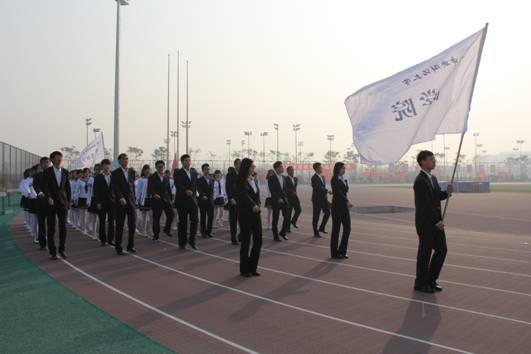 开幕式向来是运动会不可不看的一大亮点,本次校运会的开幕式同样精彩不容错过。代表公司21个不同院系的方阵依次经过主席台,踏着激昂的运动军进行曲,喊着响亮的口号,伴着生动的讲解,步伐整齐划一,精神饱满向上。职工方阵挥舞着各色国旗走过,教工方阵老师们的笑容亲切而温暖。各公司方阵都以奇特的创意展现各自院系的特色,在M88官方网站方阵中,男生身着严肃而潇洒的正装,女生穿着青春而优雅的海军服,既体现了身为法律人的严谨认真,又不失老员工的青春活力。