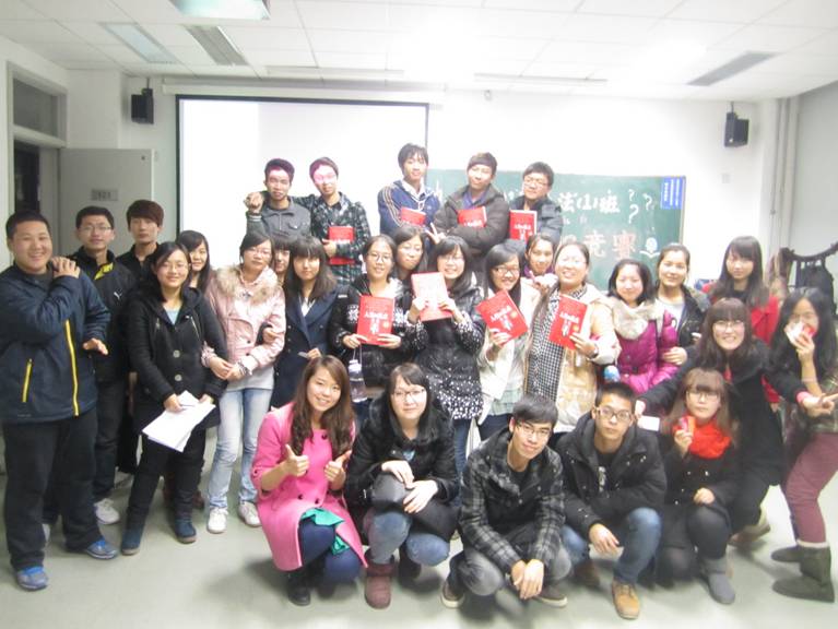 最后是颁奖环节,由班长贾彦宁同学为各组颁发奖品,活动在一片欢乐声中落下帷幕。同学们纷纷表示,本次活动不仅使同学们了解了党的十八大的知识,感受党的十八大精神,同时有利于加强男女生群体间的进一步了解,促进班级团结和发展。