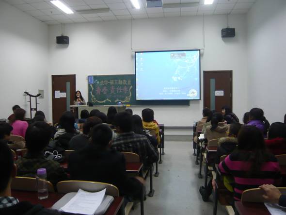 步入会场,迎接同学们的是大屏幕上M88官方网站11级1班同学们拍摄的主题教育视频,笑声此起彼伏,为即将开始的班会营造了轻松愉快的气氛。在同学们到齐之后,以“青春·与责任同行”为主题的主题教育宣讲会正式开始。