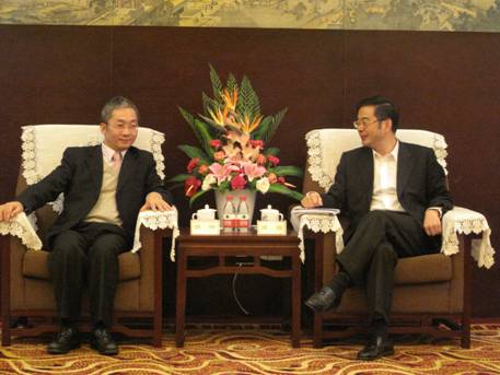 12 月 8 日 上午,湖南省委书记周强接见了调研组。郭锋教授首先向周书记介绍了此次在湖南考察调研的目的,并代表调研组对湖南经济发展尤其是金融发展提出了三个设想:第一,在湖南建设区域性金融中心;第二,在湖南设立中小企业上市孵化基地;第三,在湖南建立碳排放权交易市场。听完郭锋的介绍后,周书记首先代表湖南省委、省政府对调研组到湖南考察表示欢迎,随后,周书记总体介绍了湖南在“十一五”期间的发展成果,特别指出湖南在应对金融危机时抢抓了许多机遇且实现了加快发展;并分别从工业、农业、金融等方面详细介绍了湖南经济发展的亮点、特点。在金融发展方面,周书记介绍了很多有知名度、有实力、有潜力的湖南本土企业发展状况,强调湖南应该在碳排放交易、农产品期货、国际金融的研究交流、金融人才培养等方面有所建树。