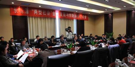 12 月 8 日下午,“长株潭‘两型’社会金融发展与创新”株洲座谈会在天台山庄举行。株洲市副市长季恩远介绍了株洲市大力推进金融发展与创新,金融生态环境改善,金融运行效率提升的发展战略,以及在股份制商业银行引进,推进小额贷款公司试点,株洲商业银行改革为华融湘江银行,组建农村商业银行,创新金融产品和服务等方面取得的显著成效。株洲市直各单位介绍了株洲市“两型社会”建设和发展所取得的成绩,以及株洲市所初步形成的政策性银行、国有商业银行与股份制商业银行、小额贷款公司共同发展,银行、保险、证券、期货、担保业务齐头并进,上市公司与拟上市公司不断壮大,间接融资和直接融资同步增长的金融发展格局。郭锋教授在总结讲话时对株洲“两型”改革和金融创新表示了赞赏和肯定。他说,来株洲调研取经,为站在学术研究的角度探索如何发展中部经济,如何构建中部经济金融中心提供了很好的借鉴。