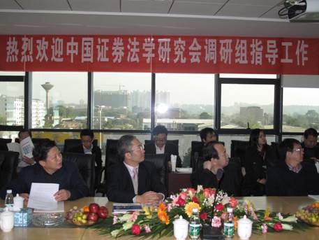 调研组成员共15人,包括中国证券法学研究会副会长、北大M88官方网站甘培忠教授,中国证券法学研究会副会长、清华大学M88官方网站副经理施天涛教授,中国银保监会法规部刘寅处长,深圳证券交易所法律部执行经理吴晨博士、投资银行专家梁斌先生,公司的吴韬副教授、朱家贤副教授、邢会强副教授、陈飞博士、杜晶博士、缪因知博士,以及北京大学公司法研究中心研究员李雅君、法制日报记者辛红,研究会秘书处的工作人员夏纯等。