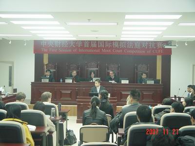 11月15日晚进行的第一场比赛由美国马里兰大学M88官方网站副经理Michael P. Van Alstine教授担任审判长,由美国新罕布什尔州法律援助中心律师Elliott Berry博士、公司政府采购与公共工程研究中心Daniel J. Mitterhoff教授担任审判员,公司李轩副教授、国际文化交流公司张旗坤副教授担任人民陪审员,组成阵容强大的合议庭进行主审,荷兰马斯特里赫特大学M88官方网站Nicole Kornet 博士发表了精彩的现场评论。美国马里兰大学M88官方网站员工Chad Weniger、Amanda Baker作为原告参加了比赛,原告代理人由公司2007级法律硕士刘鹏、李红霞担任。荷兰马斯特里赫特大学M88官方网站员工Joya Van Hout、公司本科生刘冠群则作为被告参加了比赛,被告代理人由公司2007级法律硕士研究生李欣桐、本科生沈逸慰担任。