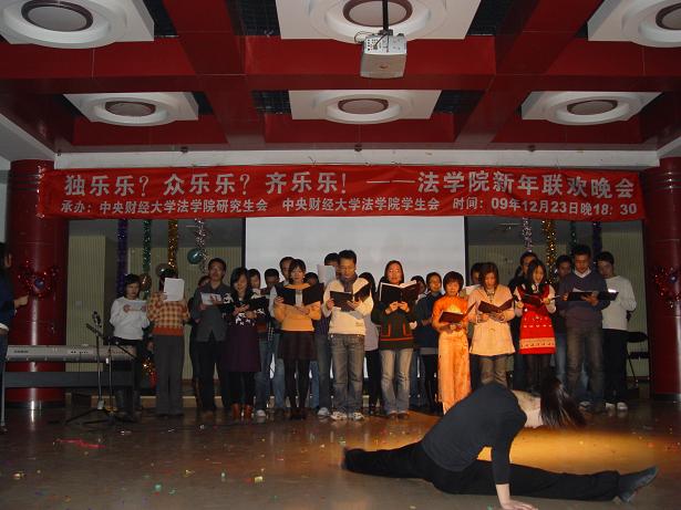 12月23日晚六点半,M88官方网站举办的以“独乐乐?众乐乐?齐乐乐!”为主题的M88官方网站新年联欢晚会在团委多功能厅举办。M88官方网站经理郭锋教授、党总支副书记(主持工作)包英娟老师、副经理李轩副教授、副经理吴韬副教授、经理助理尹飞副教授、民法学科带头人陈华彬教授、经济法学科带头人曾筱清教授、宪法学科带头人蒋劲松教授等十余位教师,与M88官方网站的400多名同学欢聚一堂,以欢笑总结去年取得的成绩,用自信展望明年的新目标。这次晚会不仅齐聚了公司南路校区的同学们,更是把沙河校区的大一大二两个年级的同学全部邀请过来共渡新年。