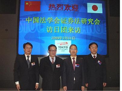 代表团受到日本有关方面的高度重视和高规格接待。日本金融厅的高级官员会晤了代表团一行,金融厅综合企划局、证监会与代表团成员举行了专门的会谈,详细介绍了日本金融厅的组织架构和日本的金融监管体制。东京证券交易所隆重欢迎代表团成员来访,并在行情显示主屏幕和滚动屏上打出了“热烈欢迎中国法学会证券法研究会访日团来访”的欢迎词,安排了访日团成员参观交易所大厅,观看了介绍交易市场的录像,与代表团举行了专场讨论,介绍了东京证券交易所的主板市场、中小企业板市场、创业板市场和正在筹建的AM市场,当天晚上东京证券交易所设宴款待了代表团全体成员。代表团还参观、访问了东京金融交易所并举行了座谈会。