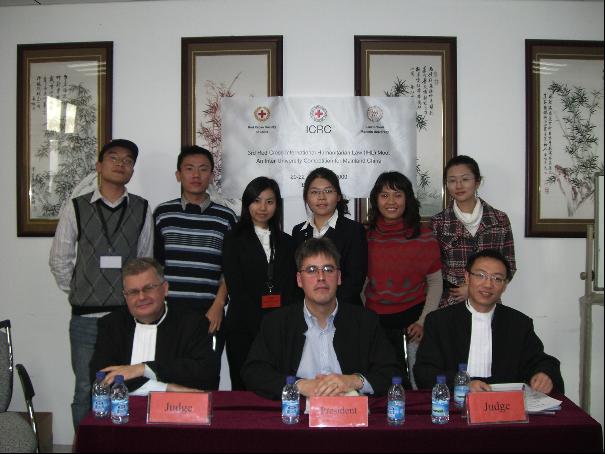 红十字“国际人道法”模拟法庭竞赛(RED CROSS INTERNATIONAL HUMANITARIAN LAW MOOT)是由红十字国际委员会(ICRC)、中国红十字会总会(Red Cross Society of China)和中国人民大学M88官方网站联合举办、中国国际人道法国家委员会协办的模拟法庭赛事。国际人道法比赛案例由红十字国际委员会(ICRC)的法律专家拟定,法官由来自不同国家和地区的国际法、国际人道法专家组成。比赛语言为英语。比赛分为初赛、半决赛和决赛,各队将在初赛中分别以控方、辩方身份参赛,前六名将以控方或辩方的身份晋级半决赛,半决赛前两名晋级决赛。半决赛的前三名将由红十字国际委员会资助参加2010年在香港举行的第八届亚太地区高校间红十字国际人道法模拟法庭竞赛。今年是该赛事的第三届,全国共有20所高校的M88官方网站派队参赛,本次赛事邀请到来自世界各国的24名法官、律师与专家担任评审法官。