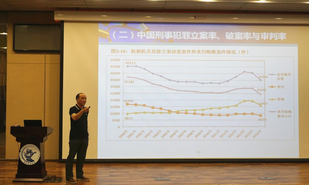 讲座开始,左卫民教授首先阐释了在司法改革和大数据广泛运用的背景下,大数据分析作为一种新兴的数据处理方式对于法学研究的重要意义。左卫民教授强调,法学研究仅靠传统研究方法是远远不够的,必须要与时俱进用地运用大数据从整体来开展研究,而且要深入挖掘数据背后的原因。随后,左卫民教授以详实数据展示了我国案件的总体情况。通过对比刑事犯罪的立案率、破案率与审判率以及民事、行政案件的数量与处理方式,左卫民教授总结出我国案件总体数量呈上升趋势、命案破案率维持在高水平以及民事诉讼率远高于刑事和行政诉讼率等;针对法律人职业群体,左卫民教授从数量和专业素质切入,提出司法职业人员呈现长时期、高比例增长与法律人的专业素养不断提升的发展态势;对于目前正在进行的法官员额制改革,左卫民教授认为未来案件数量不断增多,为解决案多人少的现象,法官的数量相应也会有所增加。最后,左卫民教授分析了大数据分析方式在法律研究上的广阔前景,鼓励法学研究者谨慎、理性地判断和使用大数据、人工智能。