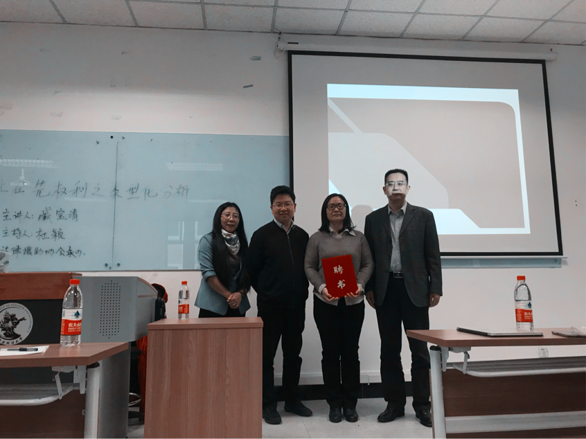 2018年10月31日下午16点,中华商标协会副秘书长臧宝清做客公司,在公司南路校区主教楼206教室为2018级法律硕士研究生作主题为“商标法上在先权利之类型化分析”的法律实践讲座。讲座由公司知识产权研究中心主任杜颖教授主持,公司副经理王克玉教授、副经理李伟副教授、张金平博士出席讲座。