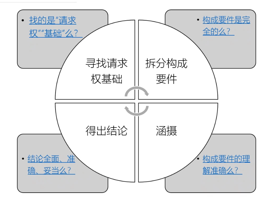 关于“研之前提”,殷秋实副教授从“能力基础”与“方法准备”两个方面展开。殷秋实副教授指出,案例分析不是空中楼阁,需要有扎实的能力基础。他通过列举三个例子,解释了概念、制度与体系三者的关系,即条文概念构成制度,制度又存在于体系之中。深刻的理解概念有助于对制度的适用,体系化把握部门法可以更好地理解制度,他建议同学们牢固掌握基本概念和理论,了解相关制度,把握法学体系,使三者形成有机统一的理论整体。在方法准备方面,民法案例分析主要有“历史分析”和“请求权基础”两种方法。所谓历史分析,就是要整理案件事实发生过程,检索每个过程中的法律关系,最终得出结论。请求权基础要求首先寻找请求权基础,确定构成要件,进行涵摄,最终得出结论。建议同学们更注重请求权基础的分析方法,并做到“目光在事实与法律之间不断穿梭往返”。