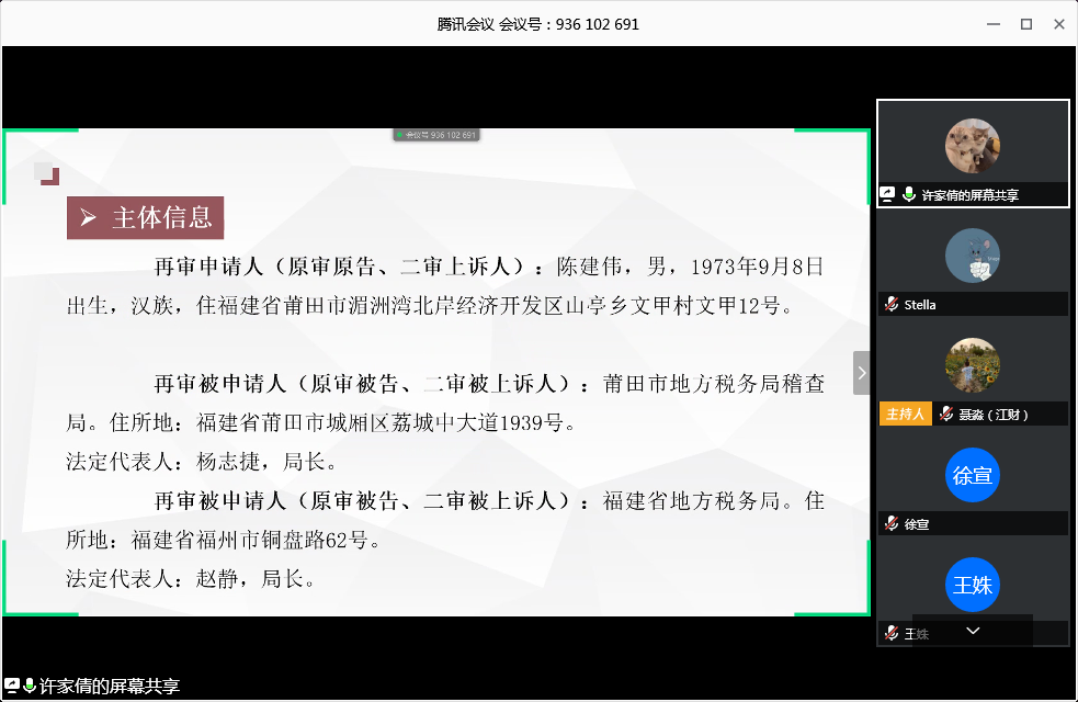 陈述环节结束后,在各位老师的引导下,辩论双方对相关焦点问题进行了相互提问和答辩。包括证据的效力问题、仲裁的证明力问题、以及相关规范性文件是否排除了个人的纳税人主体资格等。最后双方各自进行总结陈述。