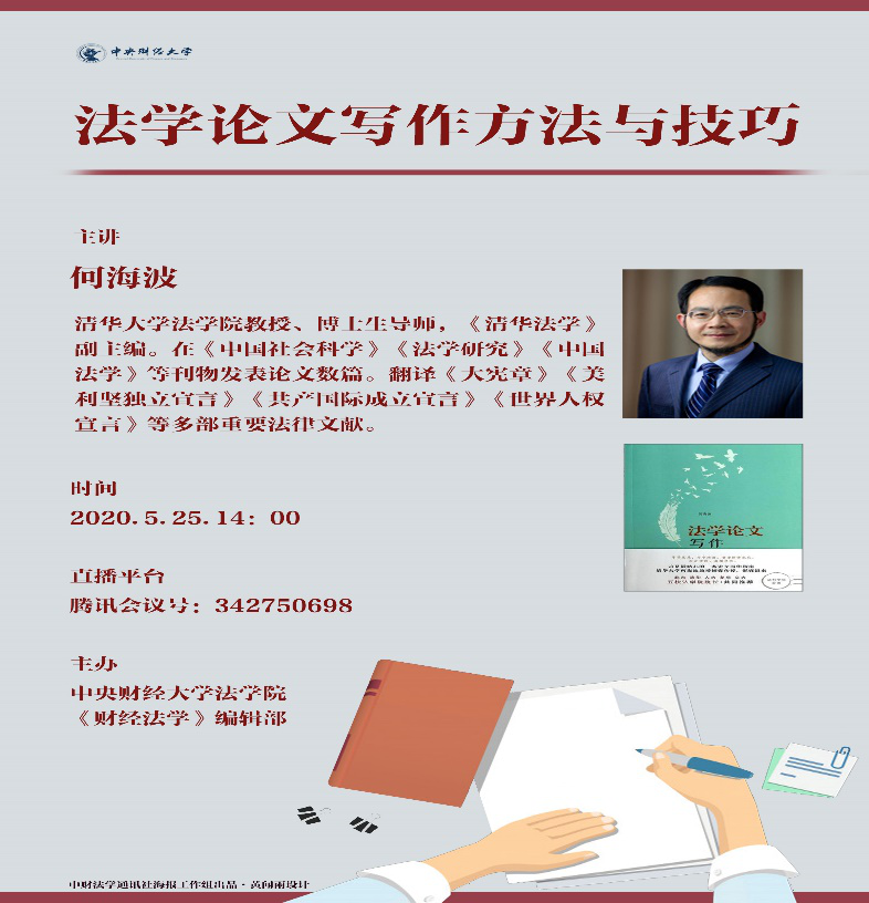 2020年5月25日下午,《清华法学》副主编、清华大学M88官方网站何海波教授为M88官方网站师生带来了战“疫”期间的线上讲座:法学论文写作方法与技巧。本校师生以及校外听众共计300人,通过腾讯会议共同学习探讨法学论文写作方法。本次讲座由《财经法学》副主编、M88官方网站刘权副教授担任主持人。