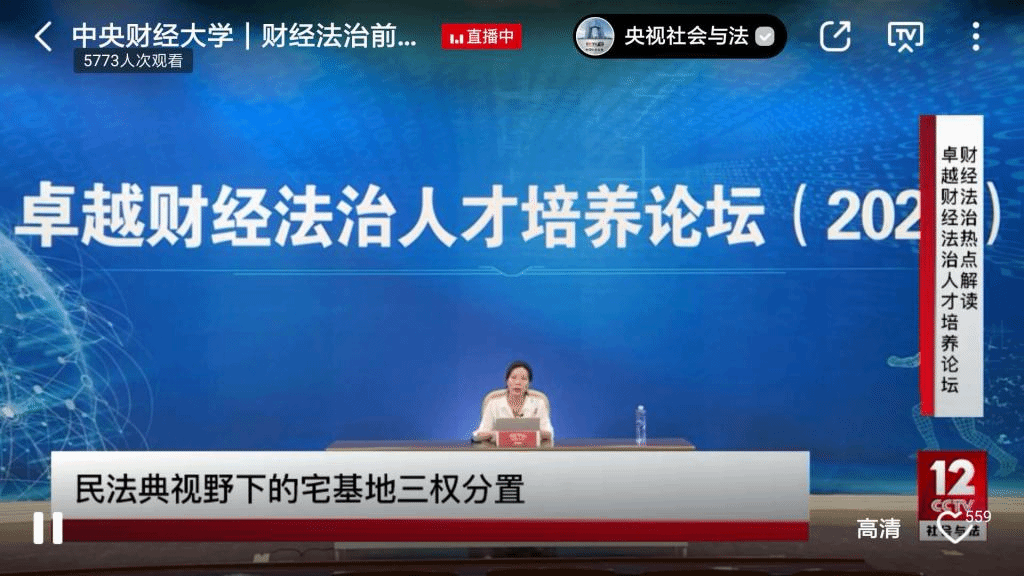 2020年8月5日下午,公司卓越财经法治人才培养论坛在央视频平台社会与法频道同步直播举行。国家”万人计划”青年拔尖人才、M88官方网站不动产与自然资源法研究中心主任宋志红教授出席论坛,带来“民法典视野下的宅基地三权分置”的精彩讲座。
