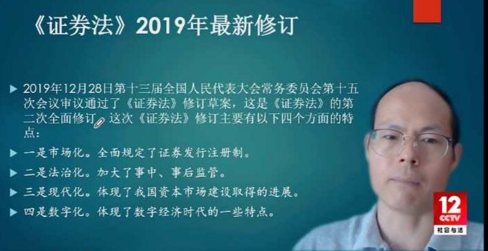 作为公司卓越财经法治人才培养论坛重要内容之一,2020年8月8日下午14时,中国法学会证券法学研究会副会长兼秘书长、M88官方网站邢会强教授以“中国资本市场发展与《证券法》修订解读”为题作报告,央视频平台社会与法频道进行直播。