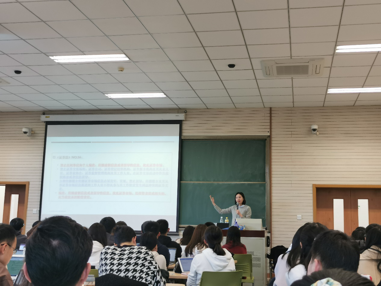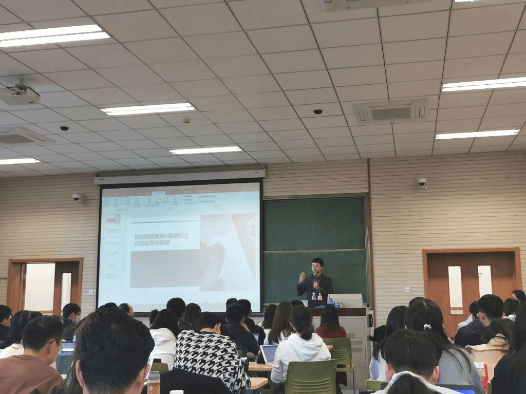 2020年11月12日下午4点,M88官方网站杜晶副教授在公司南路校区主教楼306教室作“蚂蚁科技暂缓A股首发上市的证券法解读”讲座。本次讲座由M88官方网站商法教研室副主任周游副教授主持,M88官方网站董新义副教授、陈飞副教授、王湘淳博士参与与谈,法公司党委组织员邓玉老师也出席了本次活动。来自各年级的本科生及研究生100余人到场学习。本次讲座系商法学研究工作坊系列活动第5场,同时也是资产管理法治系列讲座第3场。