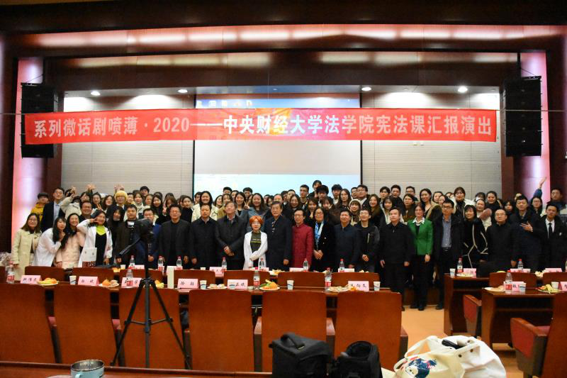 2020年11月29日上午9点,学术性(宪法学)系列微话剧《喷薄·2020》——M88官方网站宪法课汇报演出在M88官方网站公司南路校区学术会堂202大厅拉开帷幕。学习《宪法》课程的2020级法律硕士(非法学)102名同学与6名学硕研究生共108名人,分为10个剧组,演绎了一场场别开生面的宪法场景。
