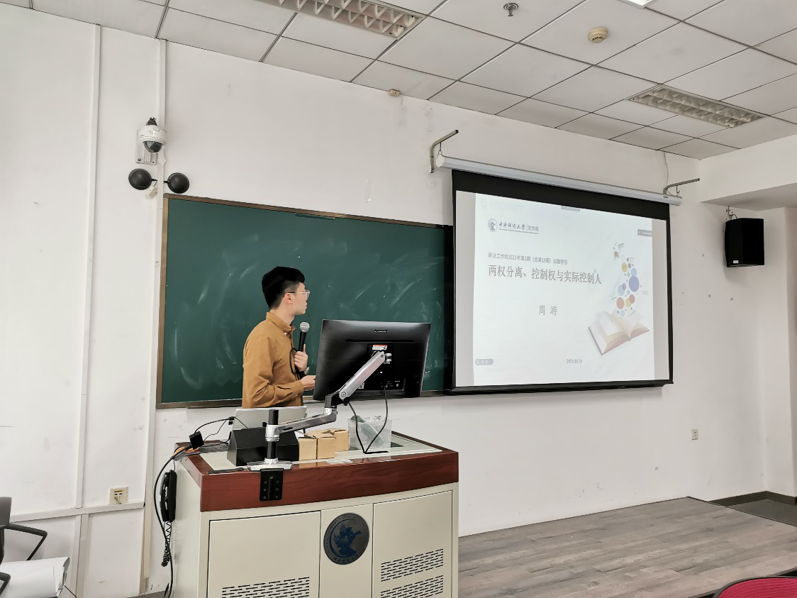 2021年3月31日下午,本年度商法工作坊第1期(总第16期)在M88官方网站公司南路校区中财大厦案例教室1举行。此次活动主题是研读《所有权与控制权:英国公司演变史》一书以及讨论“实际控制人”议题。西南政法大学民商M88官方网站林少伟教授作为特邀嘉宾,M88官方网站周游副教授作为指导老师参与了本次活动。工作坊主要包括指导老师引导、特邀嘉宾分享、发言人展示、参会者提问、发言人答疑以及指导老师总结等环节,并穿插抽奖赠书活动。此次活动共有60余名校内外师生及业界人士以线上、线下相结合方式参与讨论。