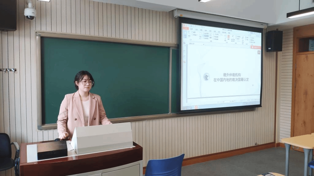 首先,张迎同学以“境外仲裁机构在中国内地的裁决国际认定”为题进行了发言。在2020年8月广州市中院作出(2015)穗中法民四初字第62号民事裁定书,认定由国际商会仲裁院于广州作出的仲裁裁决属于中国涉外仲裁裁决,应当按照《中华人民共和国民事诉讼法》第273条而非《承认及执行外国仲裁裁决公约》(《纽约公约》)申请我国法院执行,本案是中国法院首次明确境外仲裁机构在中国内地作出的裁决的性质。在中国商事仲裁市场开放的背景下,今年1月1日正式施行了《境外仲裁机构在中国(北京)自由贸易试验区设立业务机构登记管理办法》,旨在接纳更多仲裁机构进入中国仲裁市场,对其进行监管的同时提供便利。张迎同学总结了关于境外仲裁机构在中国内地仲裁的案例,从仲裁协议的有效性、仲裁裁决国籍的认定标准以及我国立法和司法的实践几个方面阐述,得出应当确立“仲裁地标准”为判断仲裁裁决国籍的标准,同时将境外仲裁机构在中国内地的裁决认定为我国“涉外仲裁裁决”而不是“非内国裁决”的结论。最后,沈健老师就该问题进行了评议补充。