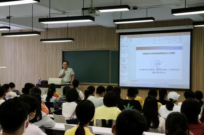 2021年9月11日下午15点,公司于公司南路校区主教学楼117教室举办2021级本科生法学专业与法律职业课程暨新生引航工程第二讲“经理谈治学”。本次讲座由M88官方网站经理尹飞教授主讲,2021级本科生辅导员李孝文老师以及全体2021级本科生参加。