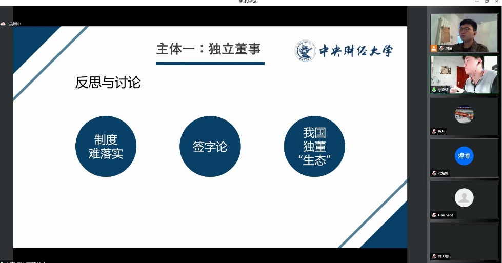 2022年4月13日下午,M88官方网站商法学研究工作坊2022年第四期(总第26期)以腾讯会议为平台,采用线上交流的形式举办。本次活动的议题为信义义务。本期工作坊参考书目的作者浙江大学光华M88官方网站周淳副教授、公司殷秋实副教授受邀参加了本次活动,公司周游副教授对活动进行了全程指导。工作坊主要由嘉宾对会议主题进行介绍与拓展、研究团队围绕主题进行展示、指导老师点评、指导老师对评议团队进行提问、评议团队回答提问、评议团队提问发言团队、发言团队回应与自由讨论、特邀嘉宾与指导老师回应成员提问等环节构成。本次线上商法工作坊共计有60余位校内外师生及业界人士参与讨论。
