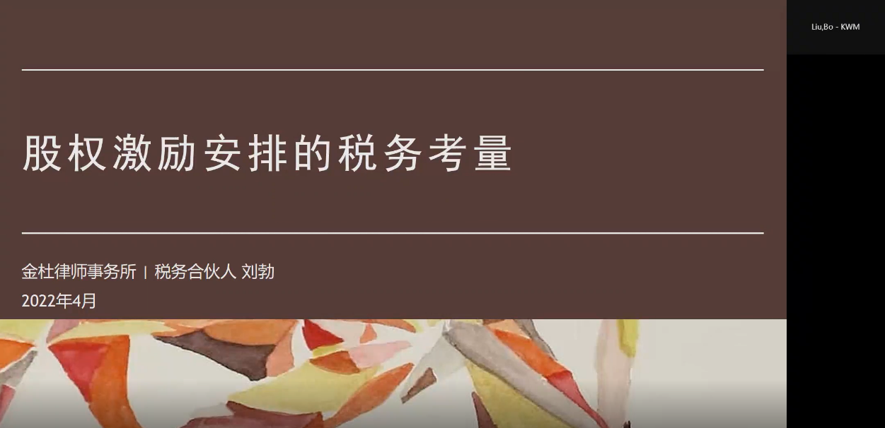 最后,刘律师凭借丰富的实务经验分析了股权激励税务实务案例,就股权激励架构、股权激励资料报送、个人所得税代扣代缴、外汇登记及资金出入境等实务要点进行了讲解。