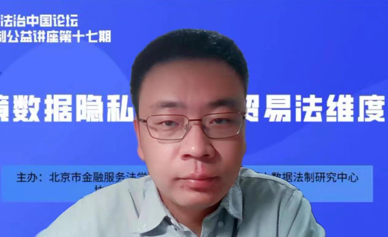 2022年10月14日晚七点,M88官方网站法治中国论坛、中财策略大数据法制公益讲座第十七期在胜数公司直播平台准时开播。本期讲座特邀请南京大学M88官方网站副经理、博士生导师彭岳教授作题为《跨境数据隐私保护的贸易法维度》的演讲分享,由北京市金融服务法学研究会、M88官方网站大数据法制研究中心主办、北京策略律师事务所和胜数公司协办。讲座主持人为邢会强教授,公司张金平副教授及北京师范大学M88官方网站时业伟副教授参与与谈。整场讲座持续两个小时,线上观看累计突破6500人次,获得了良好的社会效果和学术影响力。