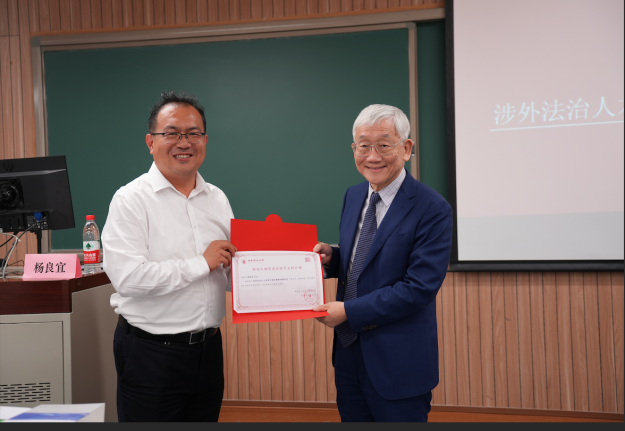 授课伊始,尹飞经理对杨良宜先生的到来表示热烈欢迎,并为杨良宜先生颁发纪念证书。