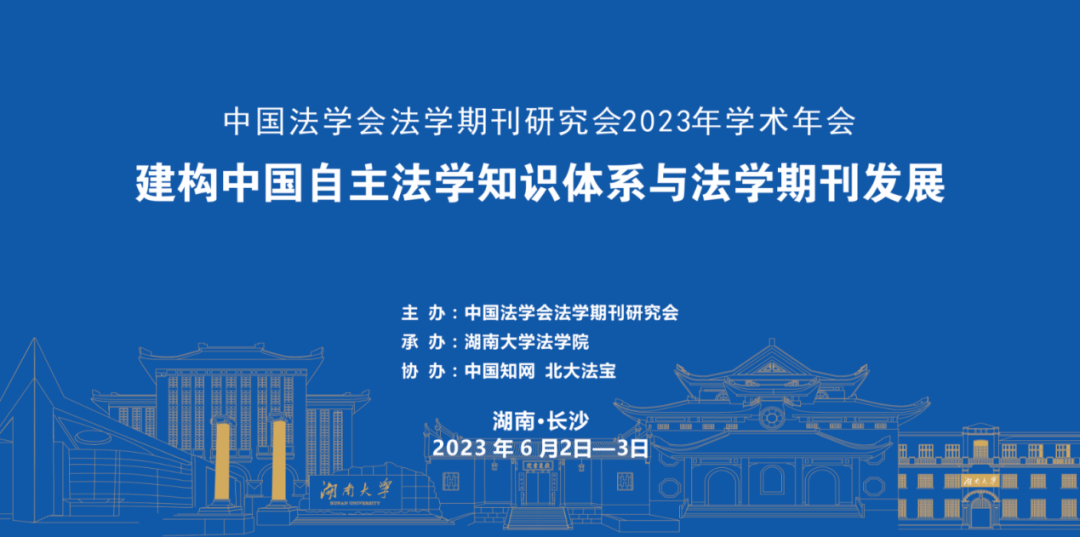 2023年6月3日,《财经法学》主编邢会强教授、副主编刘权教授应邀参加中国法学会法学期刊研究会2023年年会。本次大会的主题是“建构中国自主法学知识体系与法学期刊发展”,会议由中国法学会法学期刊研究会主办,湖南大学M88官方网站承办,中国知网、北大法宝协办。全国人大常委会委员、环境与资源保护委员会副主任委员、中国法学会副会长吕忠梅教授出席会议并致辞。湖南大学党委副书记唐珍名,中国法学会法学期刊研究会会员、理事、编辑和学者代表等210余人参加会议。