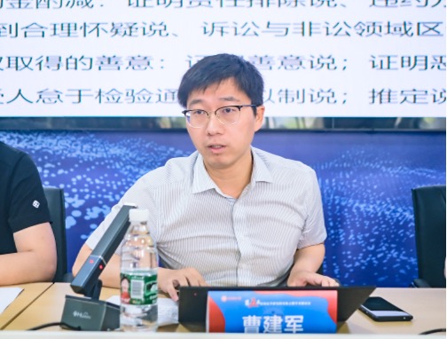 曹建军副教授提交了《论<民法典>中证据规范的类型与功能》一文,并作第二阶段的主题发言。从谁来证明、证明什么、如何证明出发,民法证据规范可以划分为证明责任规范、证明对象规范、证据方法规范。实体法化解“证明难”的路径主要包括责任共担、细分事实和利益衡量,实体法学者经常依据要件事实的分层而非请求权规范的分层,这可能导致证明责任分配出现重合或错误。