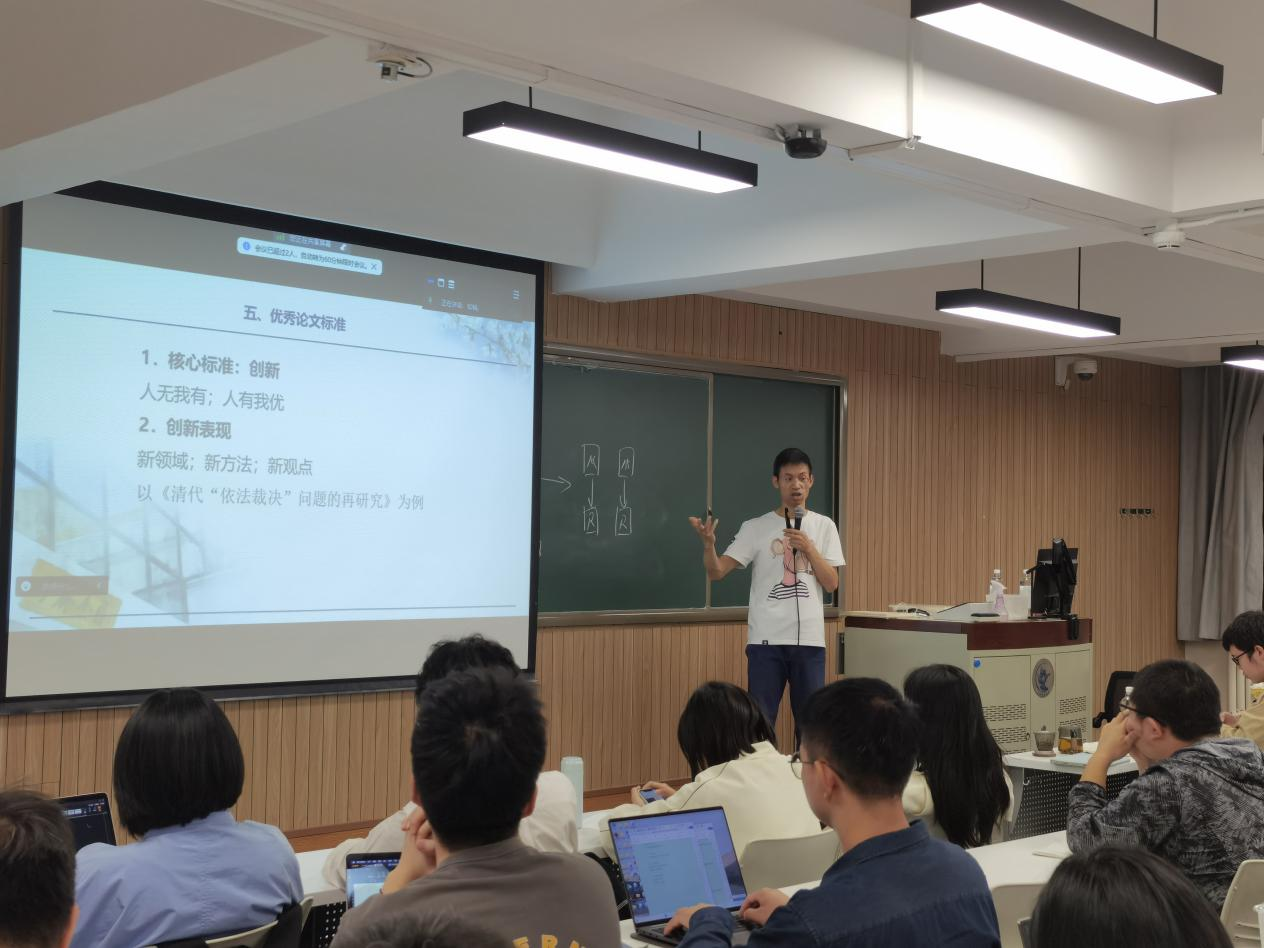 讲座中,邓建鹏教授从金庸到古龙,从归有光的宏篇到柳宗元的名诗,自法律史研究到金融法论文投稿,以各类具体而生动的事例,阐明研究与论文发表之道,启发大家在论文写作上少走弯路,成为优秀法律人。讲座座无虚席,同学们在笑声与掌声齐鸣中深受教益。