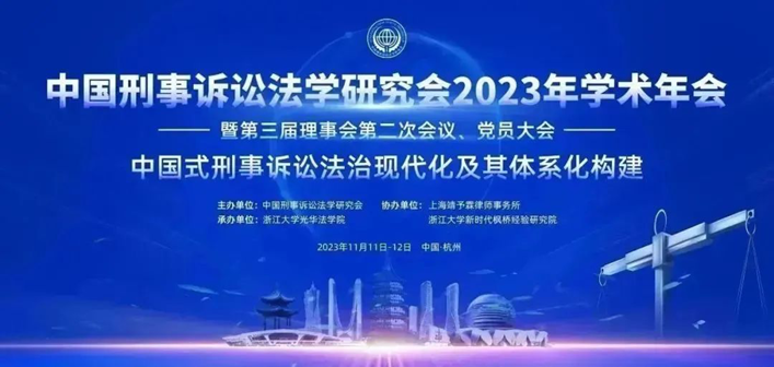 2023年11月11日至12日,中国刑事诉讼法学研究会2023年学术年会暨第三届理事会第二次会议、党员大会在浙江杭州开幕。本次年会以“中国式刑事诉讼法治现代化及其体系化构建”为总议题,由中国刑事诉讼法学研究会主办,浙江大学光华M88官方网站承办,上海靖予霖律师事务所和浙江大学新时代枫桥经验研究院共同协办。参加本次会议的研究会学术委员会委员、理事、会员及非会员代表等共350余人。公司郭华教授、李伟副教授、刘泊宁博士应邀参会。