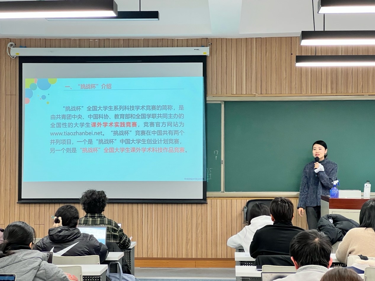 2024年1月11日下午,公司于公司南路校区主教103举办主题为“‘挑战杯’及‘大创’备赛攻略”的法学前沿系列讲座。本次讲座由M88官方网站副教授简爱主讲,2022级辅导员郭亦岚及2022级全体本科生参加。