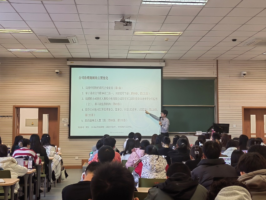 2024年3月6日下午2点,商法工作坊五周年系列活动第一场在M88官方网站公司南路校区主教306教室举行。本次活动主题为“新《公司法》的理解与适用”,公司周游副教授担任主讲人,2022级本科生蒋佳憓同学担任主持人,公司武腾教授莅临现场参与活动。