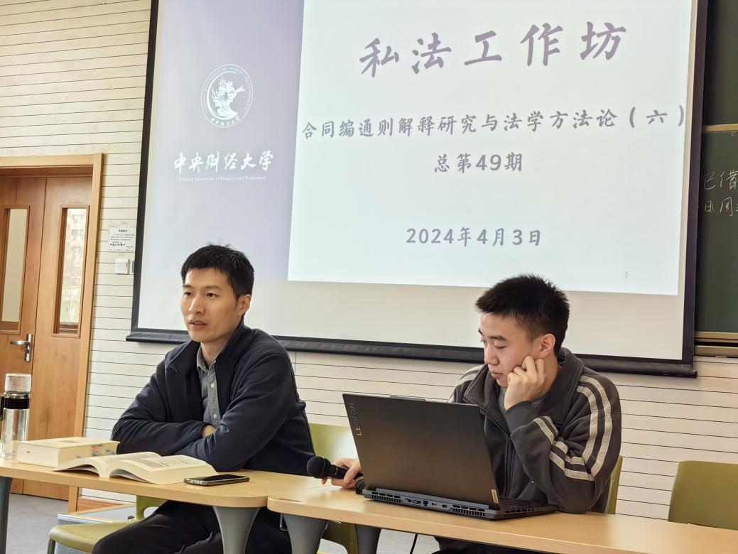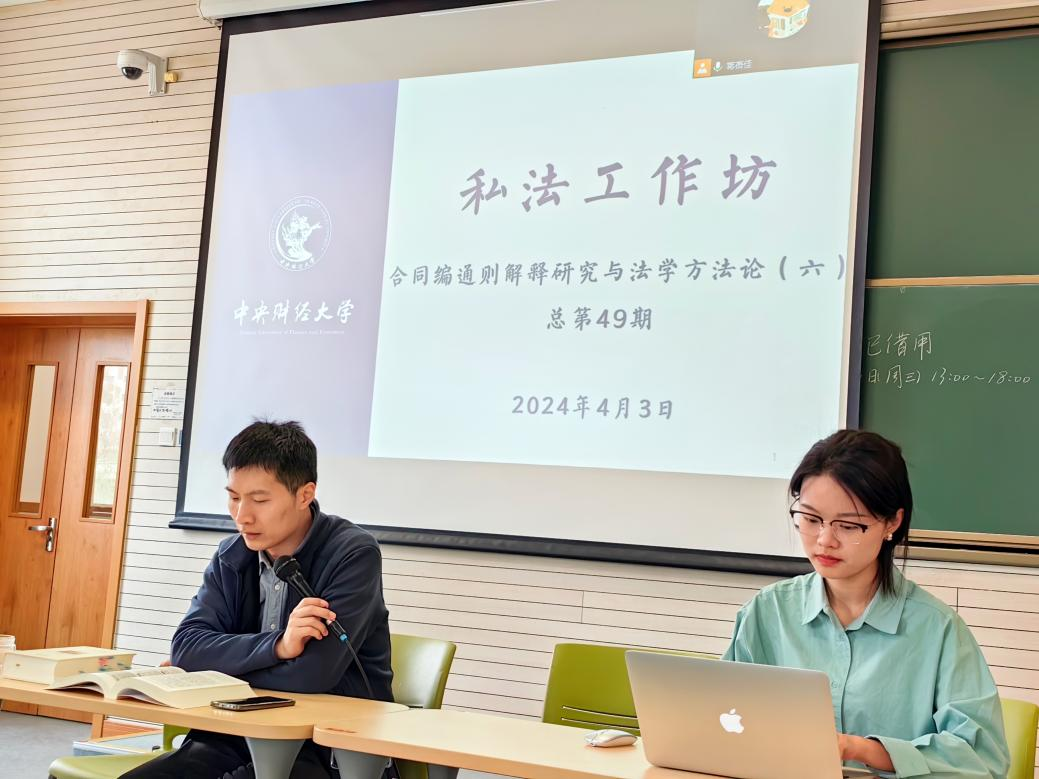 2024年4月3日下午14时至17时30分,M88官方网站第49期私法工作坊在公司南路校区主教306如期举行。公司武腾老师和二十余名本科生、硕士研究生共同研讨了《民法典合同编通则司法解释》第42条至第49条的内容,并研读了《法学方法论》第四章的内容。钟云昌、宋雯萱、马骁、唐思佳同学分享了对《民法典合同编通则司法解释》相关条文的理解,方睿婕、都可欣、赵超凡、蒋蓓佳同学汇报了阅读《法学方法论》相关内容的体会。