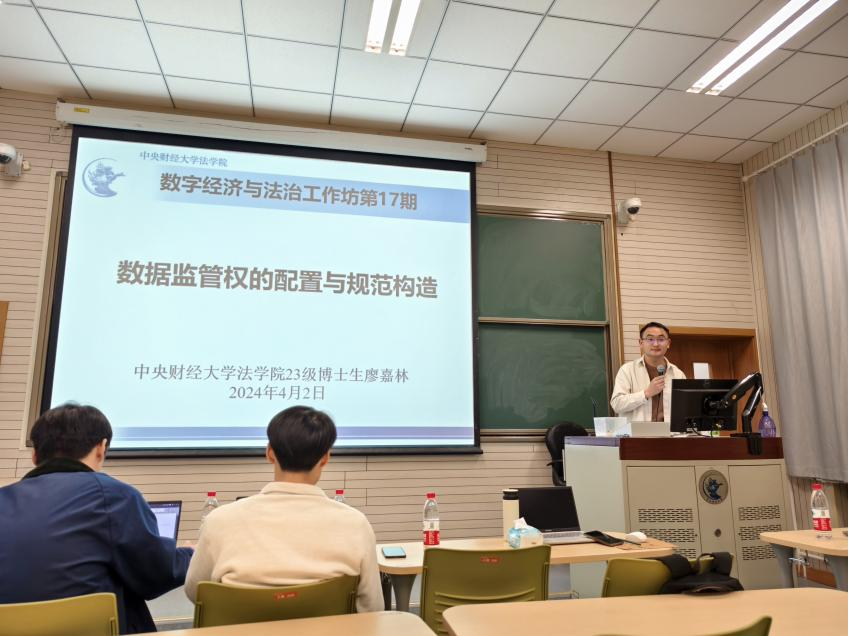 4月2日晚,M88官方网站数字经济与法治工作坊第17期在公司南路校区主教308教室顺利开展。本期活动以“数据监管权的配置与规范构造”为主题,公司王世杰讲师担任主持人,博士生廖嘉林担任报告人,博士生董畅、硕士生李晨、张效科担任评议人,全校30余位师生参加活动。
